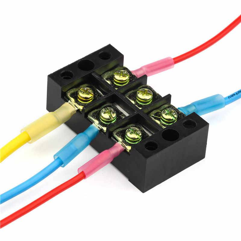 Эффективный и многоразовый вариант, чаще используется внутри распределительных коробок и при подключении к сети осветительных приборов в доме. Клеммная колодка – небольшая латунная втулка в пластиковом корпусе. Чтобы внутри неё закрепить край провода, надо сначала плотно закрутить винты – руками или с отвёрткой. Важно подобрать колодку, чтобы внутри поместились жилы кабеля